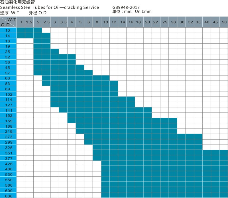石油裂化用管適用于石油精煉、石油化工廠的爐管、熱交換器管、低溫管和配管,產品質量優(yōu)良,化學成分均勻,鋼管綜合性能良好。